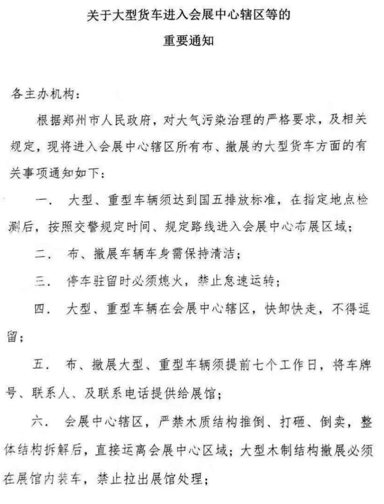 大貨車進(jìn)入會(huì)展中心區(qū)域的通知