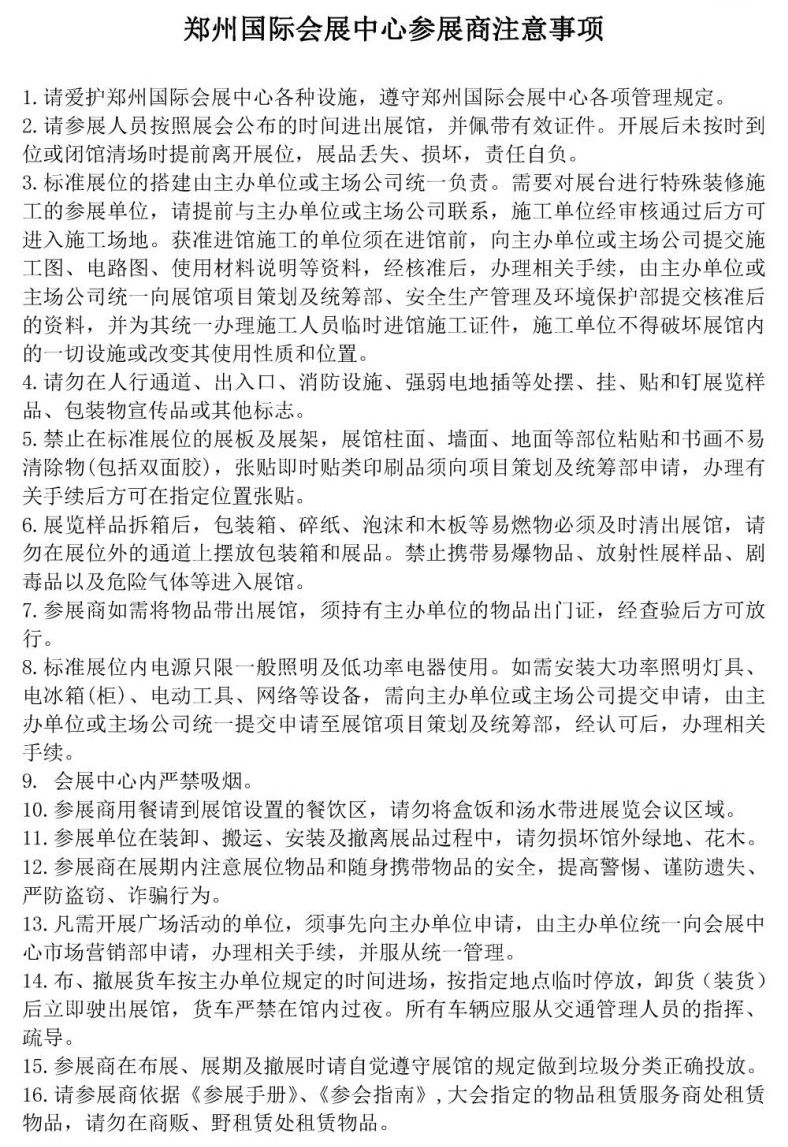 《鄭州國(guó)際會(huì)展中心參展商注意事項(xiàng)》文檔下載