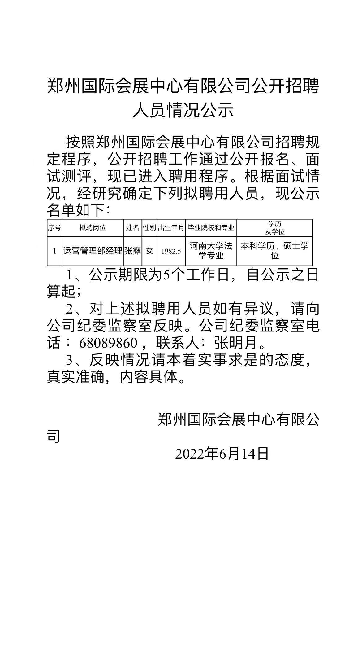 公開招聘 人員情況公示