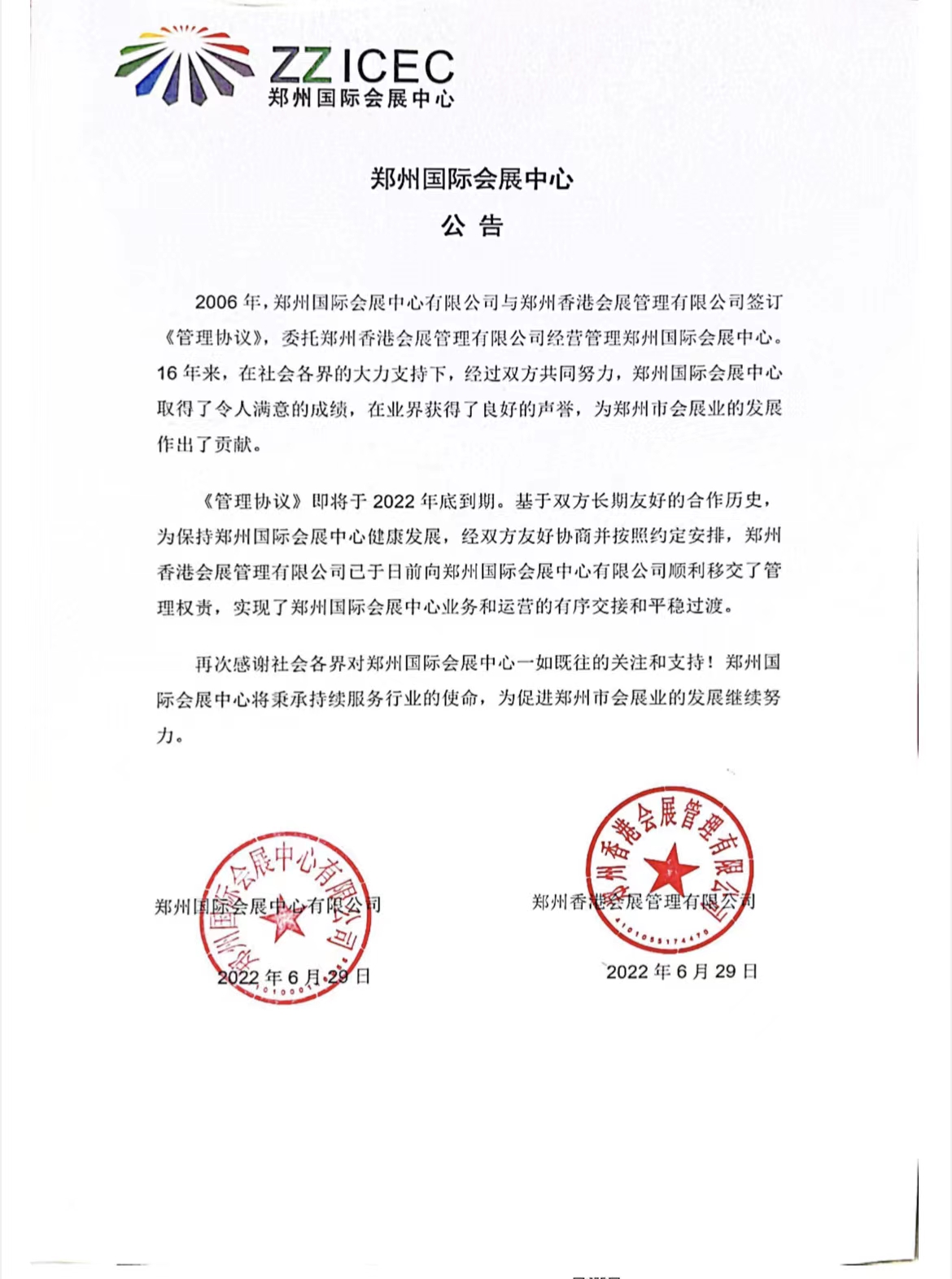 鄭州國際會展中心公告