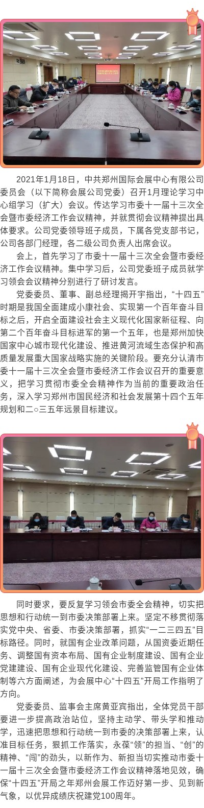 中共鄭州國(guó)際會(huì)展中心有限公司委員會(huì) 召開(kāi)理論學(xué)習(xí)中心組擴(kuò)大會(huì)議傳達(dá)學(xué)習(xí)市委 十一屆十三次全會(huì)暨市委經(jīng)濟(jì)工作會(huì)議精神